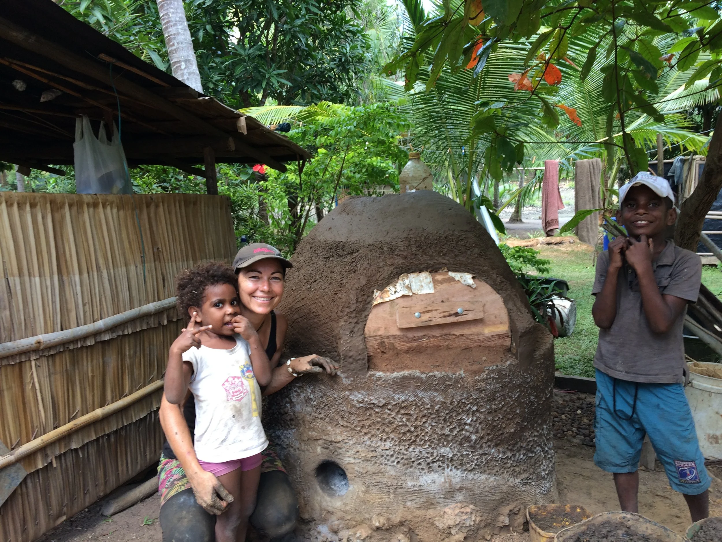 The construction of rocket cob ovens, a simple yet effective cooking solution that improves both the health and environmental conditions for families in the Western Province of PNG.